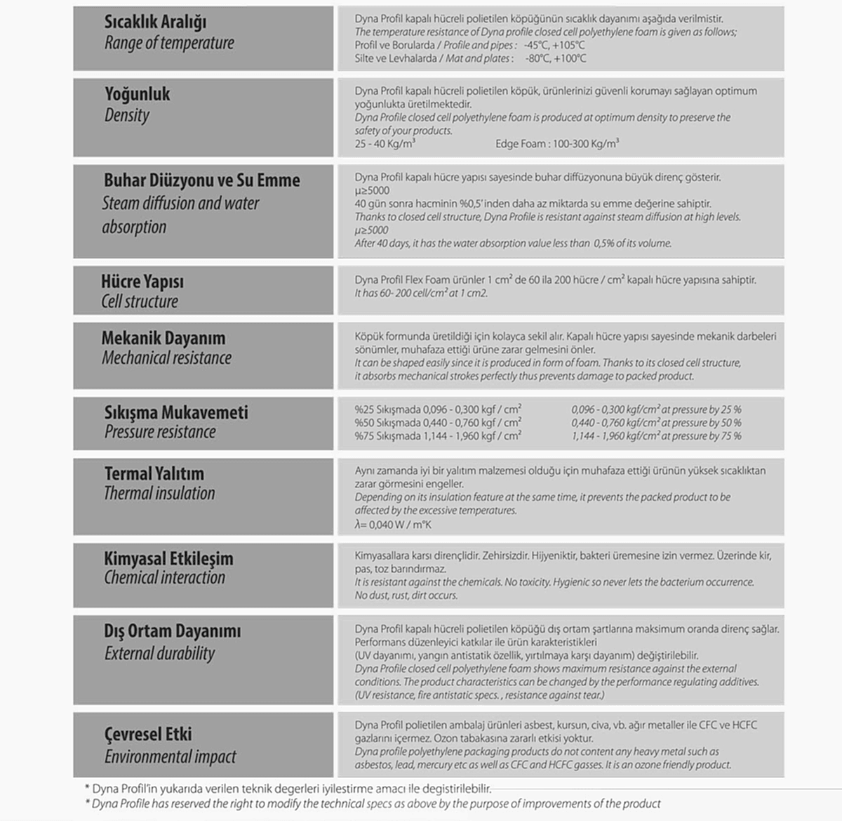 - Köpük formundan dolayı mekanik darbeleri sönümleyebilme özelligi
